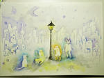 そのデジタル絵を参考に、描いたのが上に有る水彩絵です。