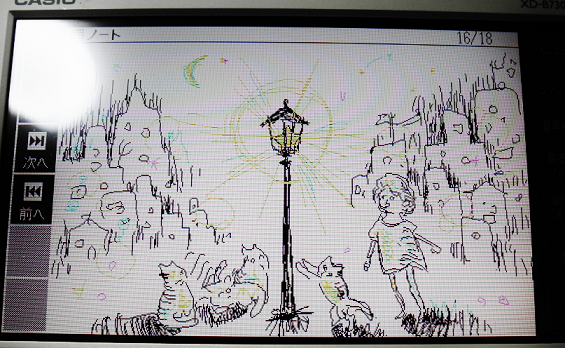 下のほうの絵は、電子辞書のおまけ機能で描いたデジタル絵です。